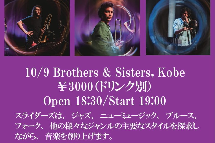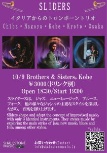 10/9(Thu) SLIDERS 〜イタリアからのトロンボーントリオ〜 10月 9 Thu 2025 LIVEopen - 18:30 / start - 19:00 Fee : ¥3,000.(DRINK別) ← →