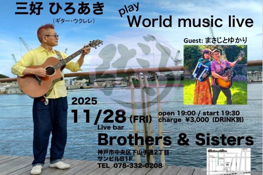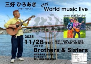 11/28(Fri) 三好ひろあき Play World Music Live ! 11月 28 Fri 2025 LIVEopen - 19:00 / start - 19:30 Fee : ¥3,000.(DRINK別) ← →