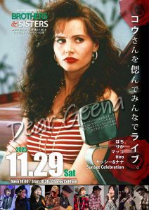 11/29(Sat) コウさんを偲んでみんなでライブ! 11月 29 Sat 2025 LIVEact : ぽち・りか・マッコ・Hiro・ヤッシー&ナナ・Sunset Celebration open - 18:00 / start - 18:30 Fee : ¥1,500.(DRINK別) ← →