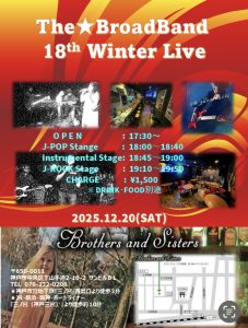 12/20(Sat) 【貸切イベント】The ☆ Broad Band 18th Winter Live 12月 20 Sat 2025 LIVEopen - 17:30 / start - 18:00 Fee : ¥1,500.(DRINK別)Screenshot ← →