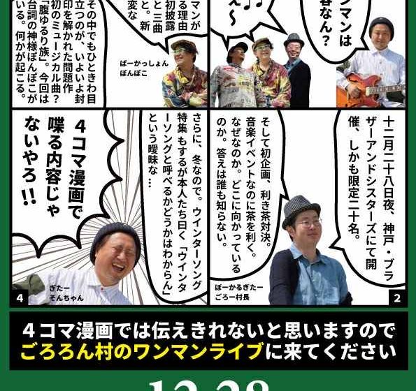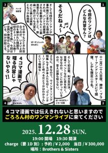 12/28(Sun) ゴロー村長 ワンマンライブ! 12月 28 Sun 2025 LIVEopen - 19:00 / start - 19:30 Fee : 予約¥2,000.(DRINK別) / 当日¥300,000(DRINK別)🤭 ← →
