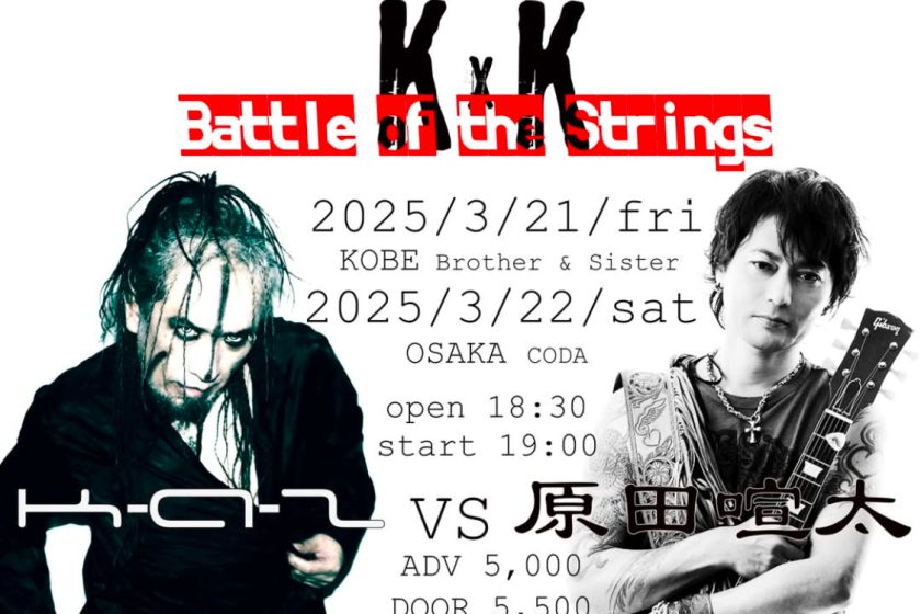3/21(金)K×K Battle of the Strings ★ KAZ vs 原田喧太 3月 21 Fri 2025 LIVEOPEN 18:30 / START 19:00 CHARGE ADV. ¥5,000 (+1Drink) DOOR ¥5,500 (+1Drink) ← →
