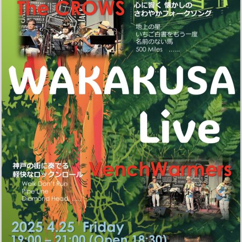 4月25日(金) 貸切りイベント! 4月 25 Fri 2025 LIVE〜WAKAKUSA LIVE〜 act : The CROWS / Vench Warmers open - 18:30 / start - 19:00 〜 21:00Screenshot ← →
