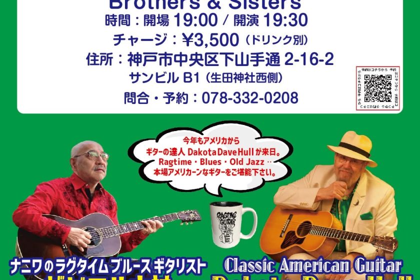 4月8日(火) Dacota Dave Hull & ザビエル大村 at 神戸三宮 Brothers & Sisters!