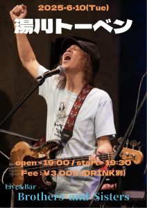 6/10(Tue) 湯川トーベン! 6月 10 Tue 2025 LIVEopen - 19:00 / start - 19:30 Fee : ¥3,000.(DRINK別)Screenshot ← →