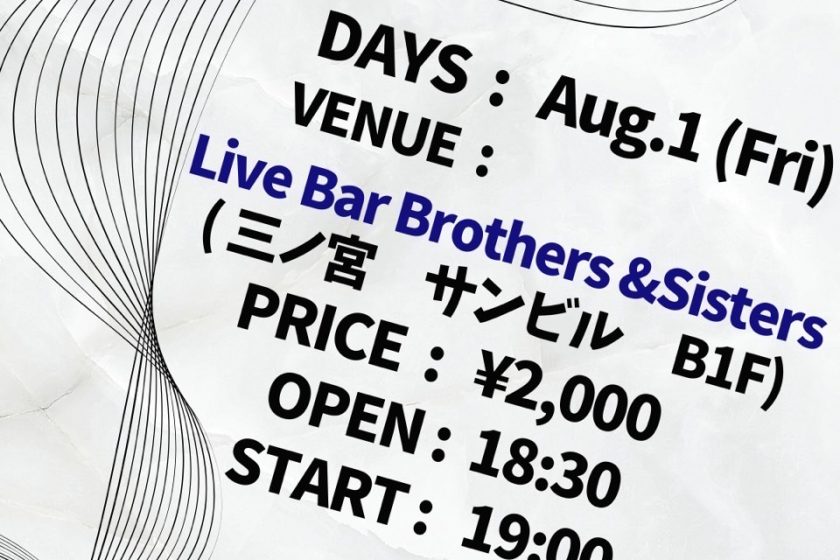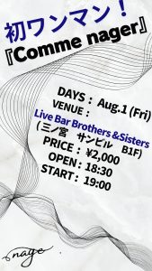 8/1(Fri) 初ワンマン!『Comme nager』 8月 1 Fri 2025 LIVEopen - 18:30 / start - 19:00 Fee : ¥2,000.(DRINK別) ← →