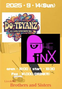9/14(Sun) DO-TEYANZ / THE PINX 9月 14 Sun 2025 LIVEopen - 18:00 / start - 18:30 Fee : ¥1,000.(DRINK別)Screenshot ← →