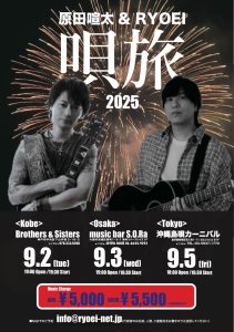 9/2(Tue) 原田喧太 & RYOEI 唄旅 2025 9月 2 Tue 2025 LIVEopen- 19:00 / start - 19:30 Fee : Adv¥5,000. / Door¥5,500.(DRINK別 ← →