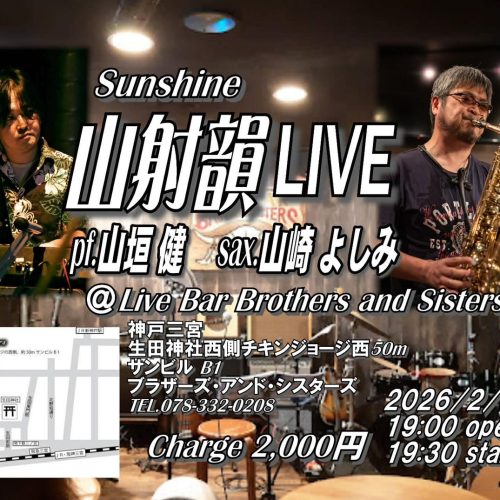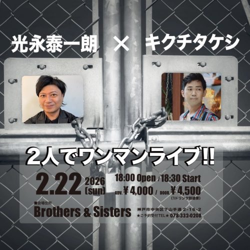 22 Sun 20262/22(Sun) 光永泰一朗 ✖️ キクチタケシ 2人でワンマンライブ! LIVE 2/22(Sun) 光永泰一朗 ✖️ キクチタケシ 2人でワンマンライブ!… MORE DETAIL