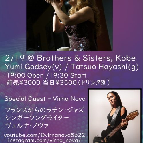 19 Thu 20262/19(thu) Yumi Godsey(Vo)・Tatsuo Hayashi(Gt) / Ppecial Guest : Virna Nova LIVE 2/19(thu) Yumi Godsey(Vo)・Tatsuo Hayashi(Gt) / Ppecial Guest : Virna Nova… MORE DETAIL