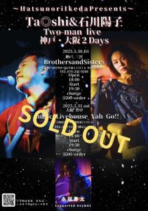 5/30(FRI) Ta ◎ shi & 石川陽子 Two-man Live in KOBE! 5月 30 Fri 2025 LIVEopen - 18:00 / start - 19:30 Fee : ¥3,500.(DRINK別) ← →